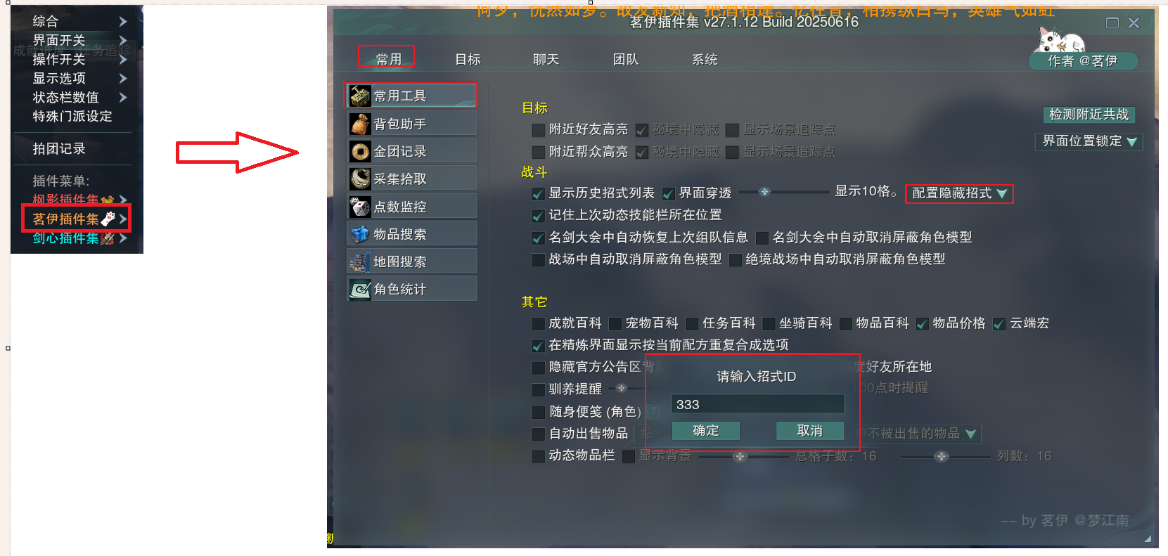 当开启历史招式后,站在碎星辰中,每隔4S会刷新一次(其实这个图标是气纯六合独尊的图标)。会影响历史招式查看,可以在茗伊插件中屏蔽,操作如下:打开茗伊插件—>常用工具—>配置隐藏招式—>添加招式ID:333。