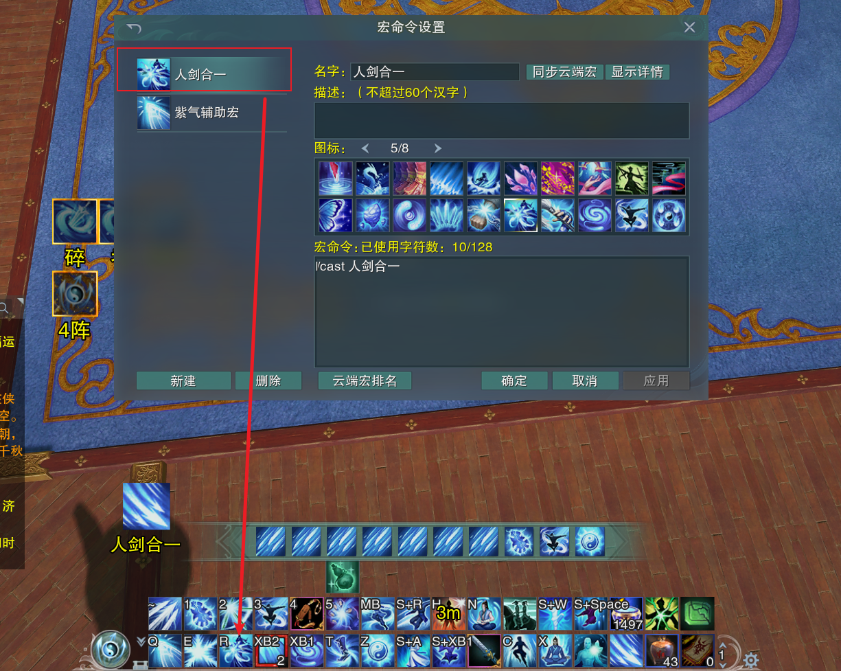 【人剑合一】与【人剑合一·解】分开计算CD,即释放人剑合一之后,等待13S后,可以通过人剑合一宏再次释放【人剑合一】来触发【云中剑】。